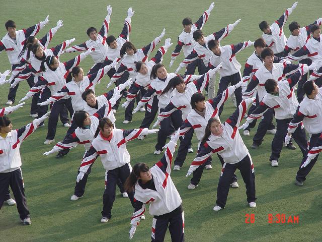 高一、高二年级全体师生高的重视这次广播操比赛,各班主任老师与体育老师密切配合,根据比赛要求,充分利用体育课、间操、大课间及课外活动的时间投入训练。力争让每一位同学掌握动作要领、节奏和力度要求。