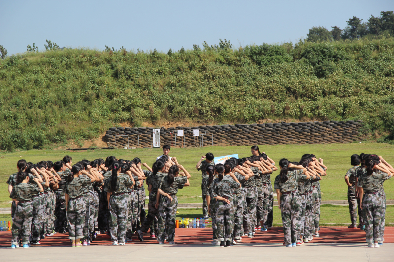 军训第四天,基地来了一批大学生教官,专程赶来为同学们做心理团体辅导的拓展训练。教官们首先给学生进行分队,选出队长,并分配一系列的任务,包括队名、口号等等,旨在训练同学们的交流合作能力。之后,又安排了很多团体活动让每个同学都参与进来,活动趣味性十足,而且要求同学们相互之间配合默契。活动中,大家体现出了极高的团体荣誉感,同时,提高了自己的合作能力、沟通交流能力,还能够换位思考,站在别人的角度想问题。