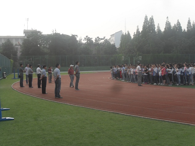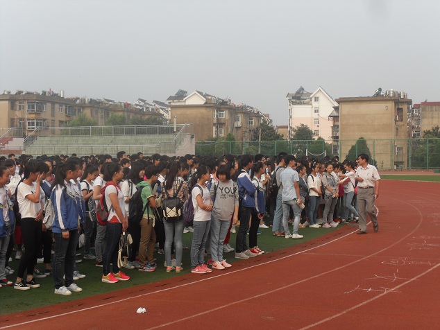 2016年5月6日上午6时,伴随着朝阳的晨辉,一声长哨声响起,淮南四中全体住校生1400余人按照预定方案,立即进行疏散,迅速到达指定位置,用时约7分36秒。