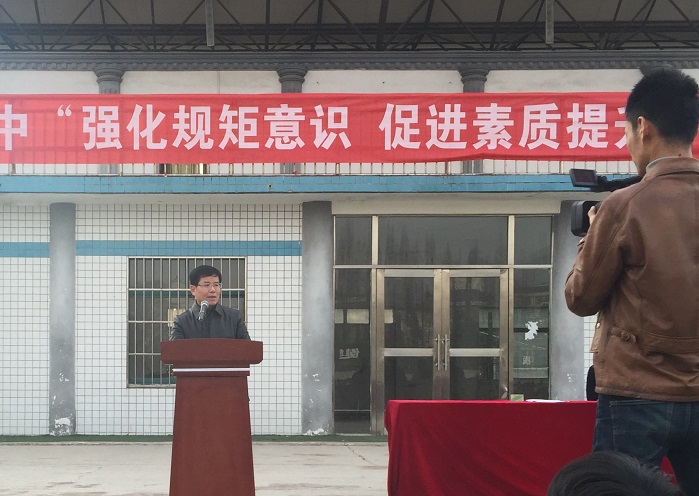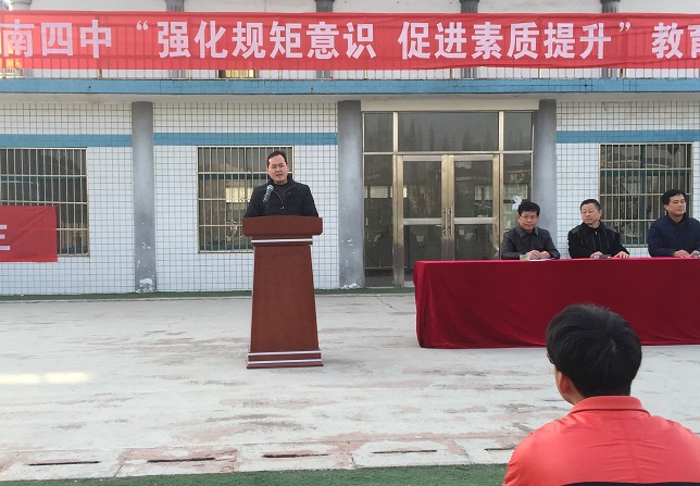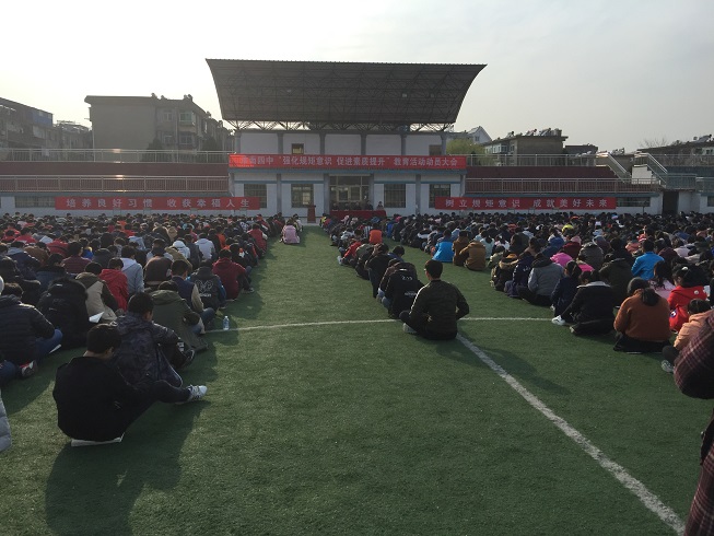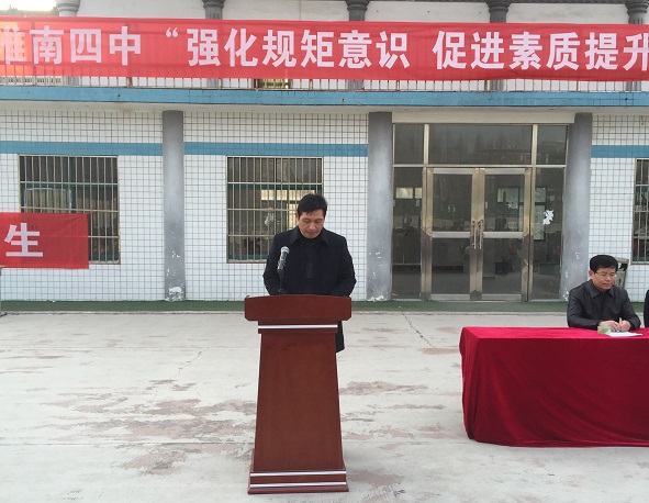 3 月 3 日下午,淮南四中学生隆重集会操场,举行“强化规矩仪式,促进素质提升”启动仪式。校长谢竹苗,副校长陈红日、副校长臧德煜、政教处副主任李永兴出席会议。大会由政教处徐坤伟主任主持。