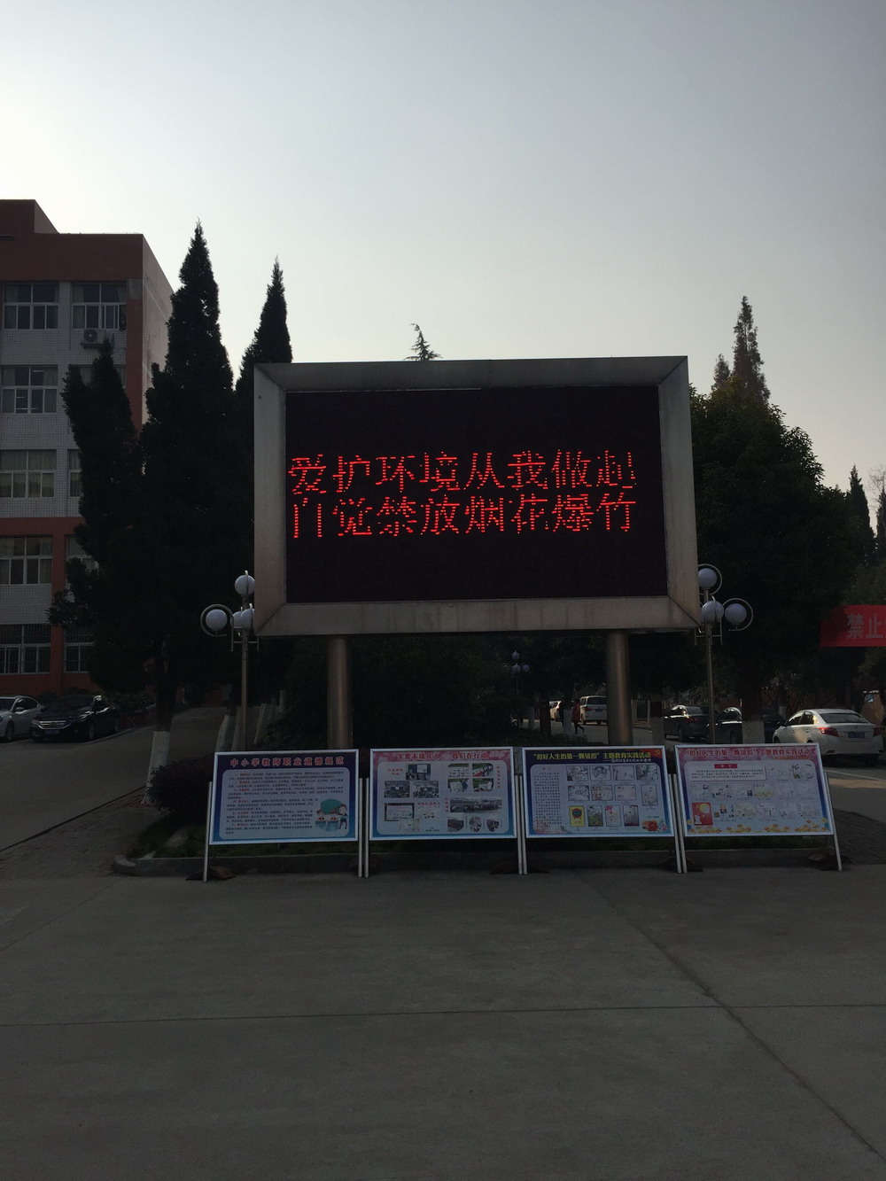 (三)、在校园内主干道悬挂“禁止燃放烟花爆竹,文明淮南从我做起”的横幅,利用学校电子屏滚动播放“爱护环境从我做起,自觉禁放烟花爆竹”等宣传标语,营造良好的舆论氛围。