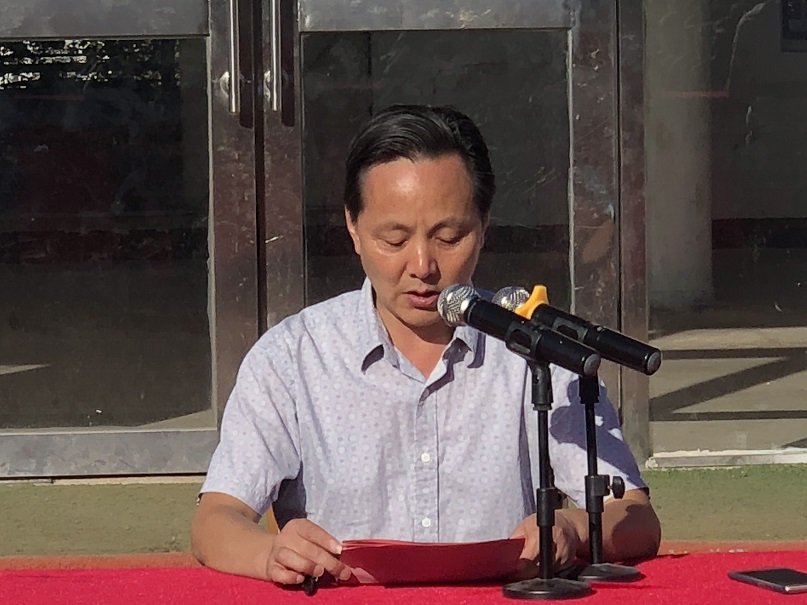 代表部队全体官兵讲话。他表示,军训是中学生活的前奏,也是同学们接触部队生活,了解国防知识的课堂,更是一个挑战自我、牺牲自我的重要过程。通过军训的考验,将为同学们迎接紧张而艰苦的高中学习生活打下坚实的基础。