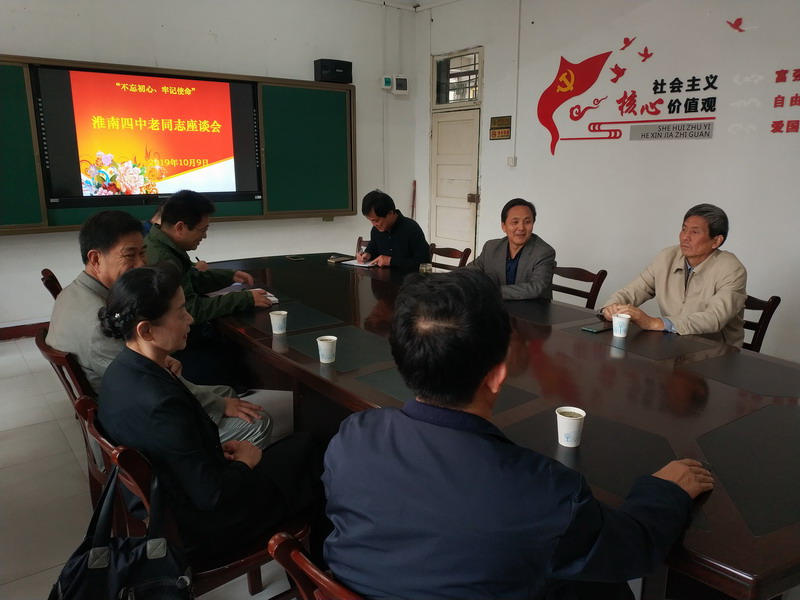 在座谈会上,老同志代表们积极献策、踊跃发言,老同志们与淮南四中有着深厚的渊源,对这所学校存在着深厚的感情。他们从学校初建开始谈起,从企业学校到市属高中,从普通中学到省示范学校,一字一句都反映了老一代四中人筚路蓝缕、攀登高峰的艰辛不易。老同志们感谢学校能够提供一个交流的平台,希望淮南四中在新一届领导班子的带领下,抓管理,抓特色,抓生源,抓教师,培养人才,留住人才,保持学校的持续发展,不断克服面临的各种压力,攻坚克难、再创辉煌。学校党委书记、校长常红卫对老同志们的到来表示热烈的欢迎,对于大家提出的意见建议表示虚心接受、衷心感谢,希望老同志们响应习近平总书记“不忘初心、牢记使命”号召,人退心不退,继续关注淮南四中的发展,继续为淮南四中的发展献计献策。座谈会在一片热烈的掌声中结束。